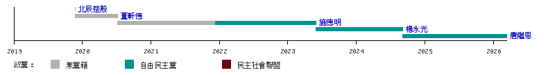 2019年11月26日 | 2020年7月7日 | 無黨籍 | 董軒德過渡內閣 | ||