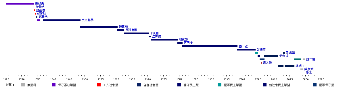 | 黨籍 | 無黨籍 | 自由社會黨 | 新社會民主聯盟 | 公民進步黨 | ||||